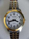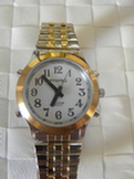 Montre parlante femme, couleur or & argent, bracelet métallique extensible