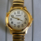 Montre parlante femme, dorée, fond blanc....….……..………...sans alarme