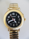 Montre parlante femme, dorée, fond noir, .….…………………… sans alarme
