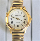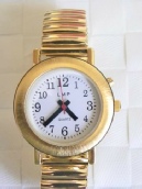 Montre parlante femme, dorée, fond blanc....….……..………...sans alarme