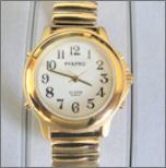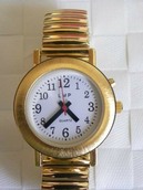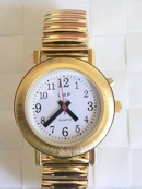 Montre parlante femme, dorée, fond blanc....….……..………...sans alarme