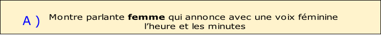 Vous entendrez une voix féminine annoncer l’heure et minute que vous choisirez ainsi que l’alarme