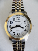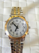Montre parlante femme, couleur or & argent, bracelet métallique extensible