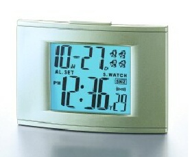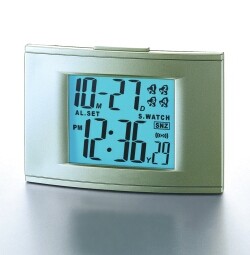 - Boutons de réglage des heures, des minutes et de l'alarme situés au-dessus du réveil,